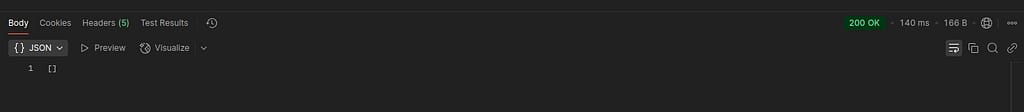 Le corps du résultat c’est « [] », ce qui veut dire un tableau vide en JSON. Vous noterez que vous avez « 200 OK », 200 étant le code réponse en HTTP qui indique que tous s’est bien déroulé. Si vous avez un autre code, c’est qu’il y a un probléme et alors maintenant on a plus qu’a prier à la grace de dieu et y aller… Le serveur vous avez pensé à lancer le serveur?