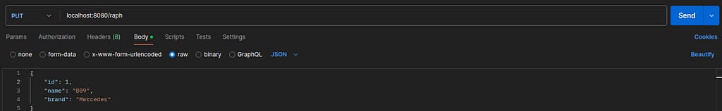 On utilise le menu déroulant pour mettre PUT à la place de POST. Et on modifie notre body ainsi :